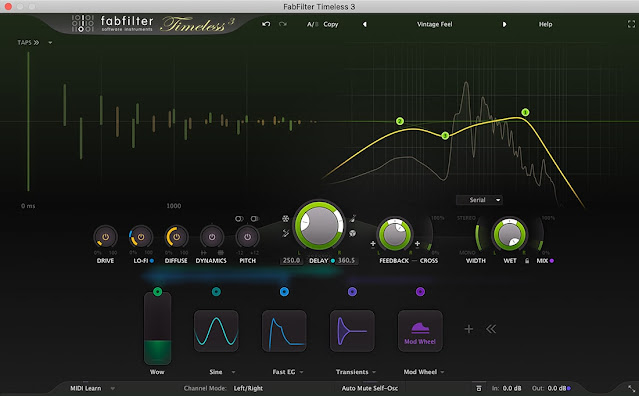 FabFilter Timeless 3 é um delay de fita versátil e com som vintage, que irá satisfazer totalmente as suas necessidades diárias de delay. E com seus efeitos exclusivos, filtros, padrões de toque e opções de modulação ilimitadas, você pode facilmente transformá-lo na máquina de destroçar som definitiva!