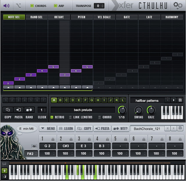 Mesmo se você tiver outros plug-ins de software de arpejo, o arpo de Cthulhu é único e poderoso, com recursos avançados, como modo de arpejo de acordes, laços, sequência de duração / velocidade, transposição inteligente, harmonia e muito mais! Cada guia do sequenciador pode operar em seu próprio comprimento, permitindo a evolução de arpejos polimétricos. Do simples ao complexo, do caótico à criação de um arpejo preciso que você imagina em sua cabeça!